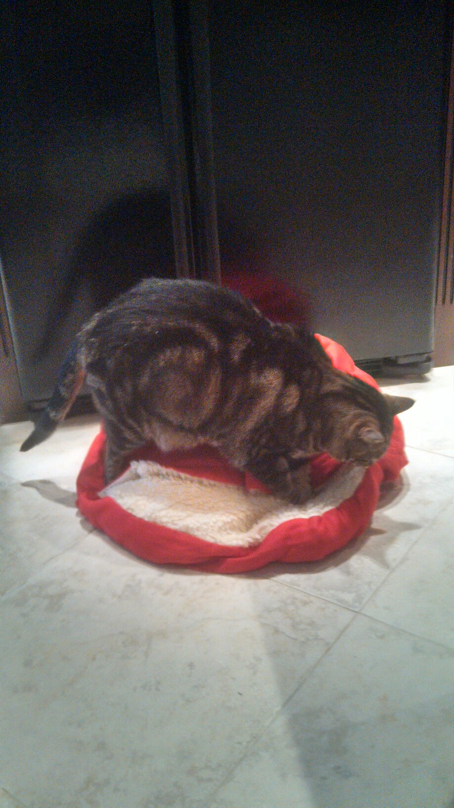 Panic and react with abject horror when your huge feline does something vaguely sexual with his cat bed.